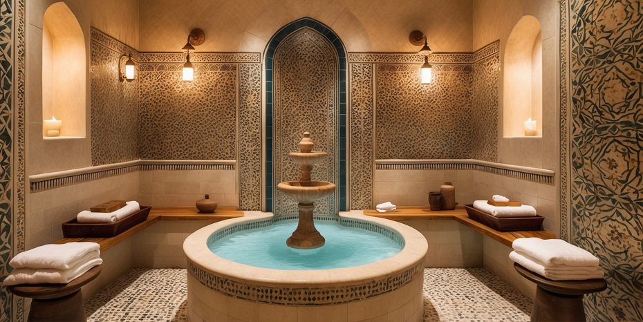 Once you're done with it, you'll enter the hammam, containing three chambers, filled with high quality on equipment, and traditional mosaic tiles, and each chamber will have its very own function for you to discover.